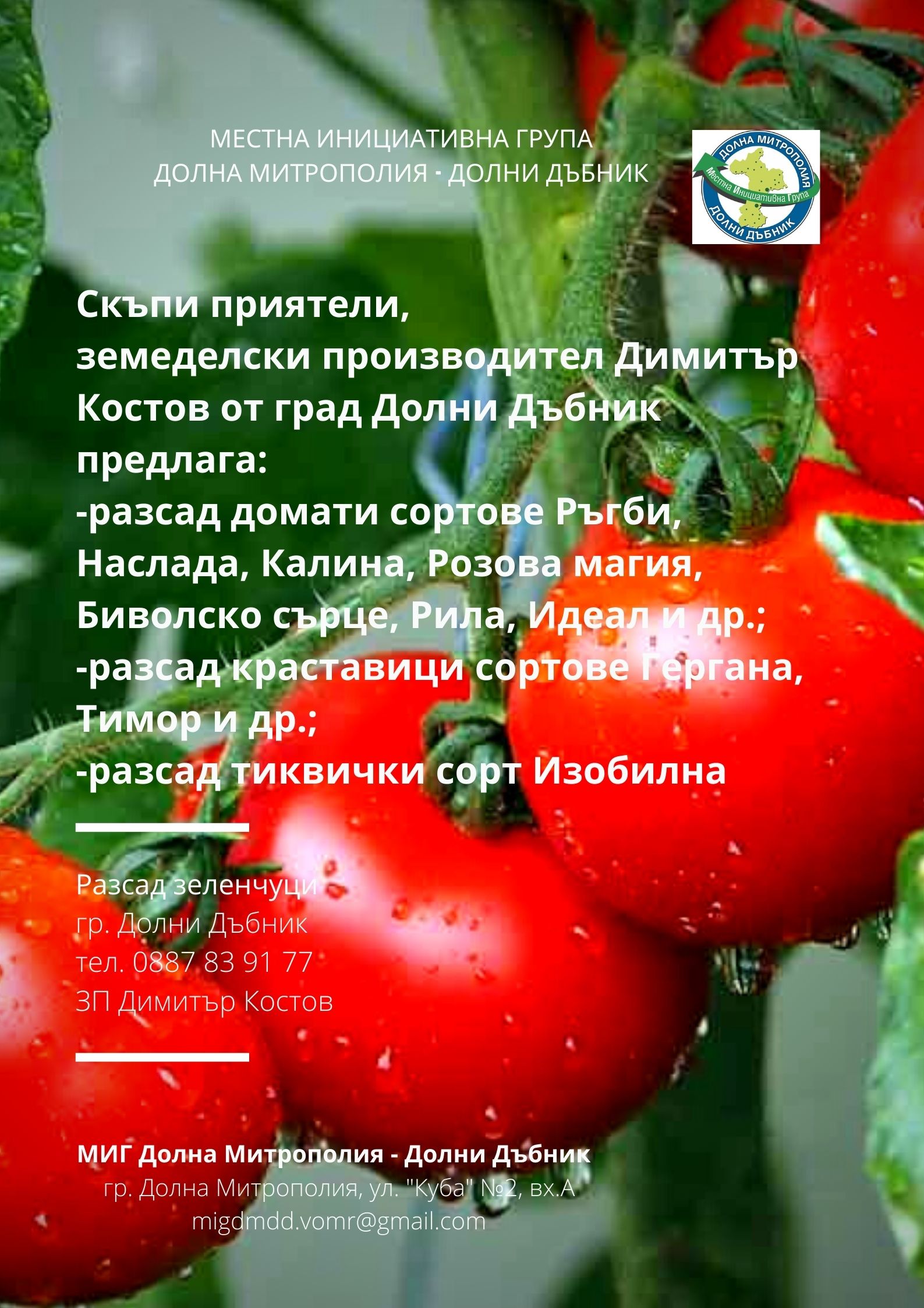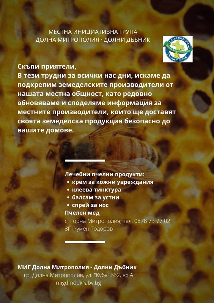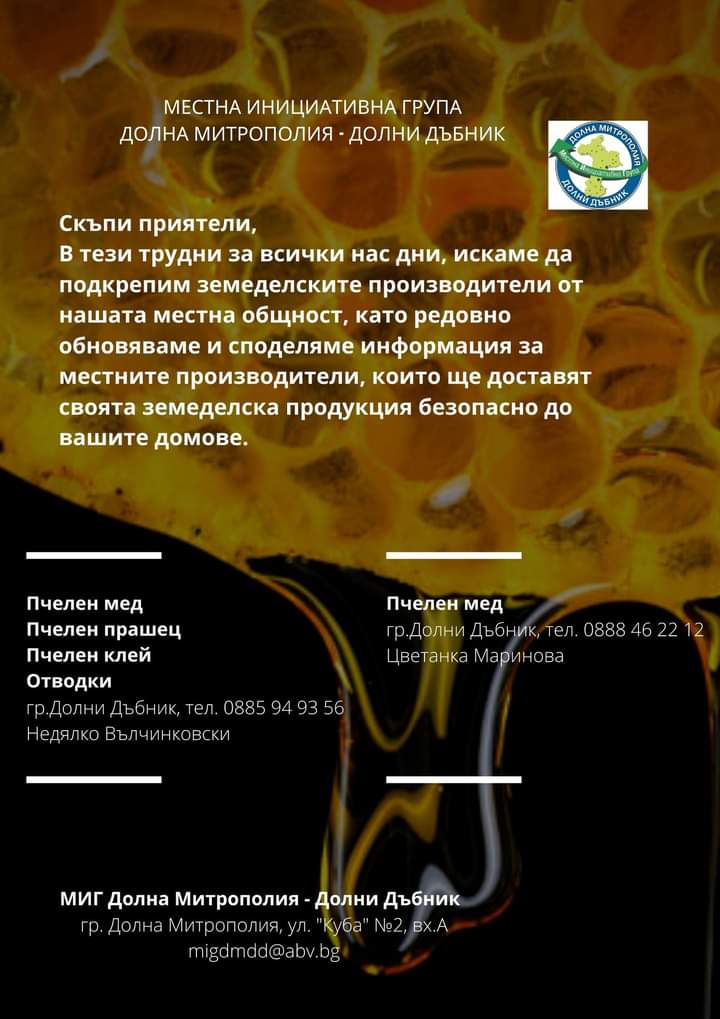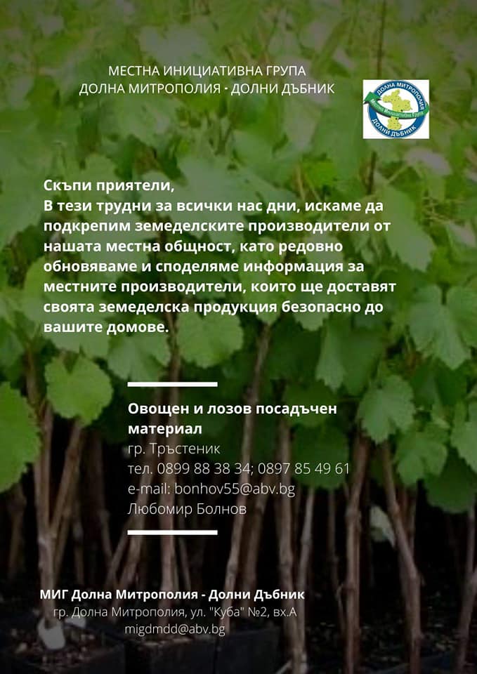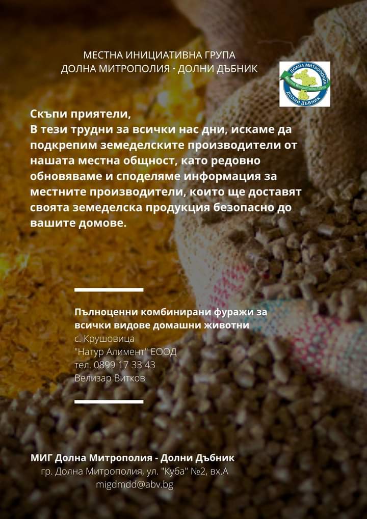 ВИРТУАЛНА БОРСА В ПОМОЩ НА МЕСТНИТЕ ЗЕМЕДЕЛСКИ ПРОИЗВОДИТЕЛИ И ПРЕРАБОТВАТЕЛИ НА СЕЛСКОСТОПАНСКА ПРОДУКЦИЯ НА ТЕРИТОРИЯТА НА МИГ ДОЛНА МИТРОПОЛИЯ - ДОЛНИ ДЪБНИК