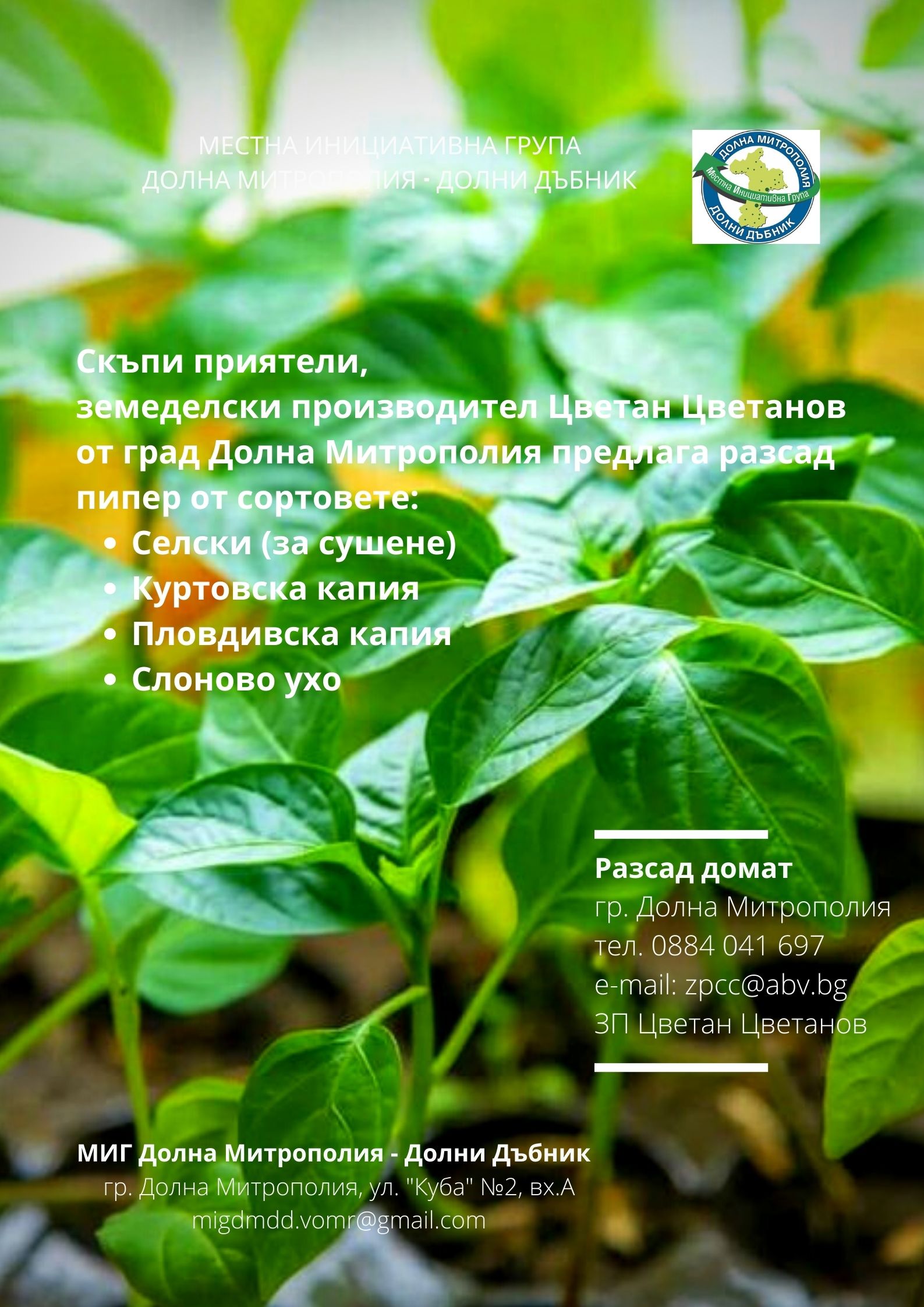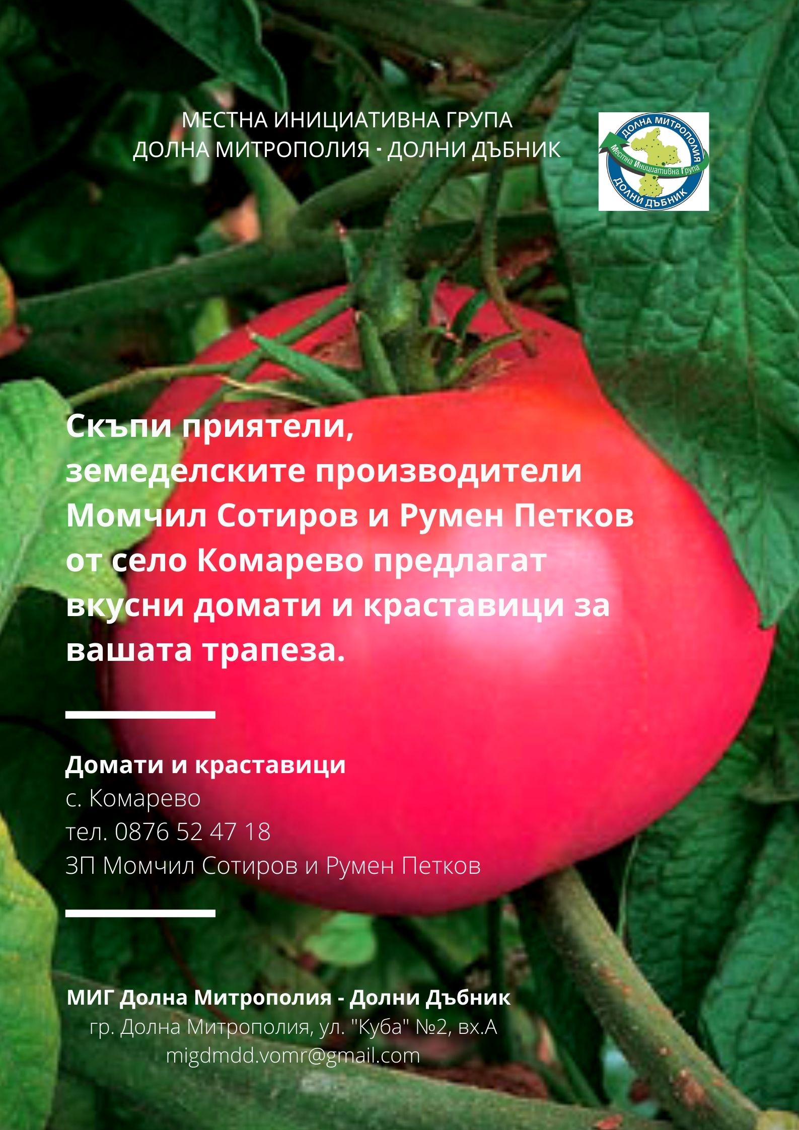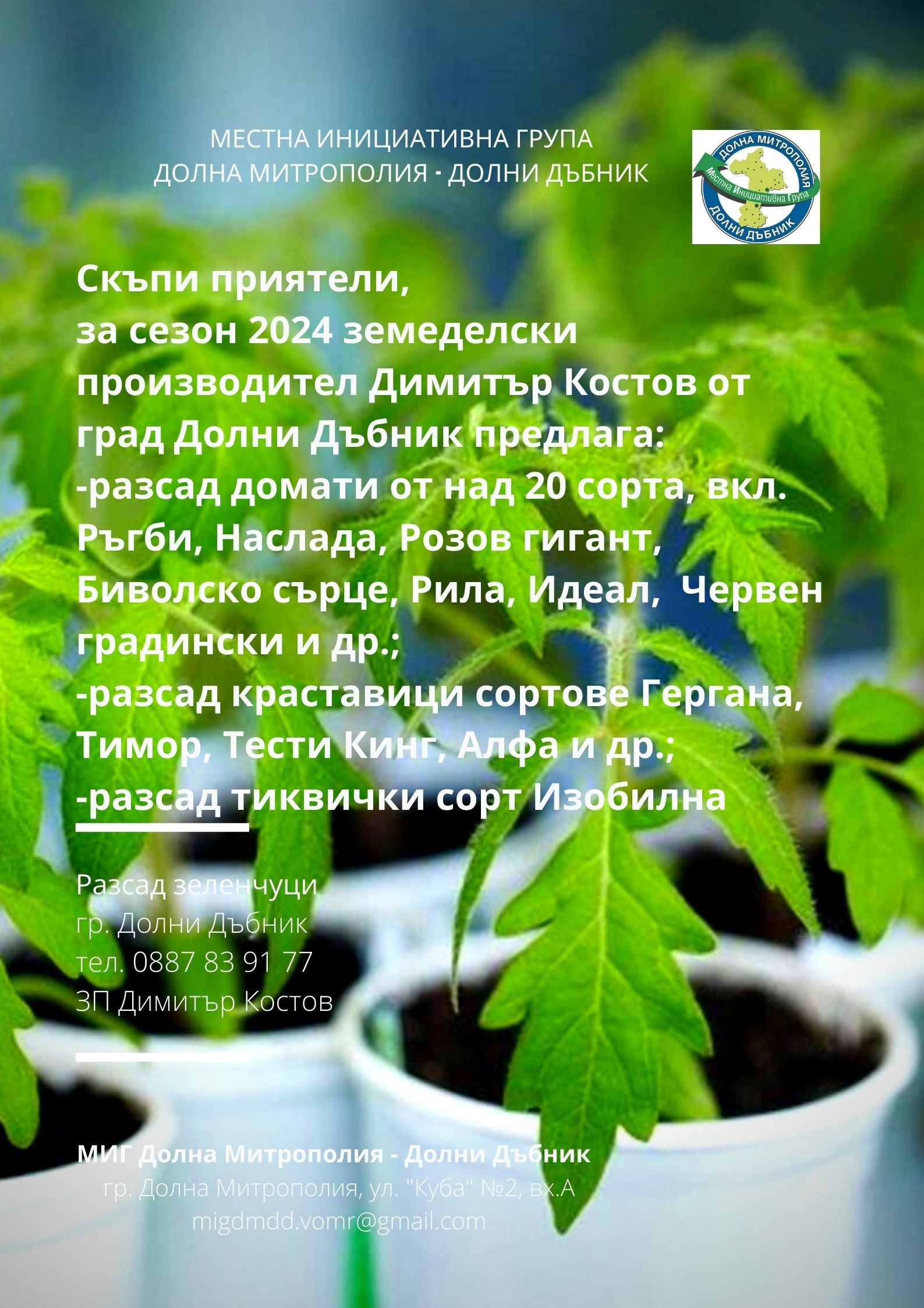 ВИРТУАЛНА БОРСА В ПОМОЩ НА МЕСТНИТЕ ЗЕМЕДЕЛСКИ ПРОИЗВОДИТЕЛИ И ПРЕРАБОТВАТЕЛИ НА СЕЛСКОСТОПАНСКА ПРОДУКЦИЯ НА ТЕРИТОРИЯТА НА МИГ ДОЛНА МИТРОПОЛИЯ - ДОЛНИ ДЪБНИК